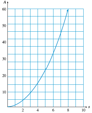 \(\vphantom{\dfrac{1}{2}}\)Area (sq cm) | 4 | 25 | 36 | 64 |