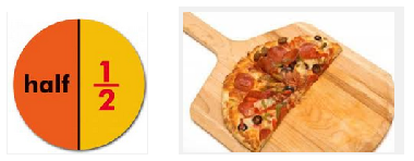 \({\dfrac{1}{2}}\) of a dozen eggs (12 eggs) \(=\) 6 eggs\(~~~~~~~~~~~~~~~~~~\blert{\text{A whole dozen is 12 eggs.}~~~~~~~~~~~~\text{Our part is 6 eggs:} ~~\dfrac{6}{12}}\)\begin{equation*} \frac{\text{part}}{\text{whole}} = \large{\dfrac{6}{12}} = \large{\dfrac{1}{2}}~~~~~~~~~~~~~~~ \end{equation*}
