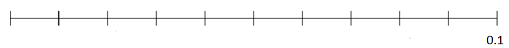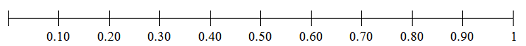 On the number line below, mark and label the decimal fractions located half-way between each pair of tick marks.