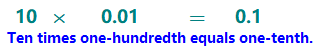 We can also say that there are ten hundredths in one tenth. You can check on your calculator that