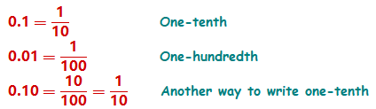 When we read a decimal fraction, the denominator is given by the place of the \(\blert{\text{last}}\) digit. For example,