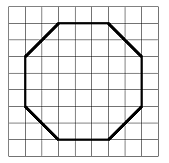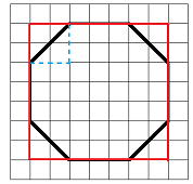 Imagine enclosing the octagon in a rectangle, as shown at right. You can check that the rectangle encloses 7 rows of squares, and each row is 7 squares long. Thus, the area of the rectangle is