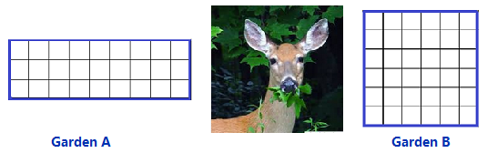 Which garden plot has the most room for blueberry bushes inside, Garden A or Garden B? Suppose that each blueberry bush fills one square on the grid. Which rectangle encloses the most squares?