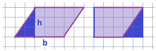 A parallelogram is a four-sided figure in which opposite sides are parallel. Use the figures below to explain why the area of a parallelogram is given by the product of its base, \(b\text{,}\) and its height, \(h\text{.}\)