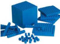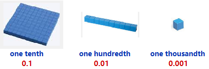 Then one horizontal slice of the block (a "flat") represents one tenth of one whole. One row of the flat (a "stick") represents one hundredth, and one small cube represents one thousandth.