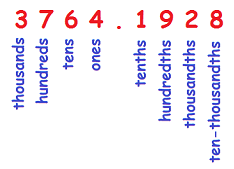 \(\blert{\text{Each decimal place is one tenth of the preceding place.}}\)