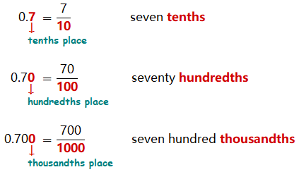 The places after the decimal point represent fractions of a whole number, and it is important to remember that:
