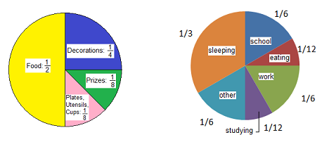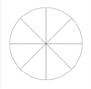 Shade a sector that shows \(\dfrac{3}{8}\) of the circle. What is the degree measure of that sector?