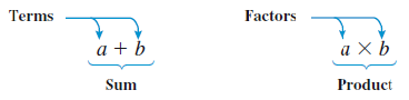 When we add two numbers or variables together, the result is called the sum, and the things added together are called terms.