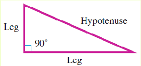 A triangle in which one of the angles is a right angle, or 90°, is called a right triangle. The side opposite the right angle is the longest side of the triangle, and is called the hypotenuse. The other two sides of the triangle are called the legs.