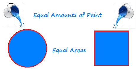 Recall that the area measures the amount of space in a region. We measure area in square units, such as square inches or square meters. It might seem strange to ask how many square units fill the inside a circle, but you can imagine painting the inside of the circle, and then asking what size rectangle we can cover with the same amount of paint.