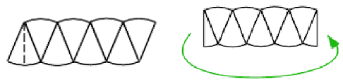 No? Okay, what if you slice off half of the first wedge and stick it on the other end, as shown in the righthand picture above?