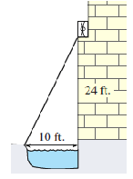 Juliet’s window is 24 feet above the ground, and there is a 10-foot moat at the base of the wall. How long a ladder will Romeo need to reach the window?