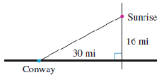 It is 16 miles from the highway to Sunrise, and 30 miles from the junction to Conway. How far is it along the back road from Sunrise to Conway?