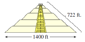 Marlene visited the Quetzalcoatl pyramid near Mexico City last summer. She measured the base and found it is about 1400 feet on each side. She unrolled a ball of string as she climbed the face of the pyramid, and it was about 722 feet to the top. How tall is the pyramid?