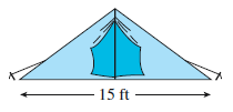 A pup tent is made out of two pieces of oil cloth sewn together along the sides. The floor piece is 15 feet wide, and the piece for the top is 17 feet wide. Poles are erected along the center line to hold the roof up. How long should the poles be?